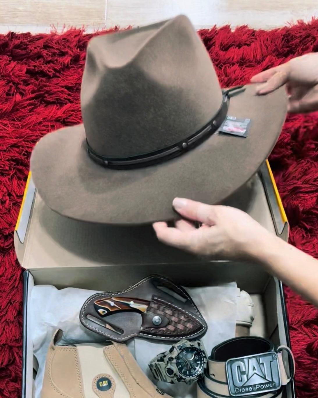 Kit Caterpillar – Botina + Relógio Militar + Chapéu Boiadeiro + Cinto + Faca