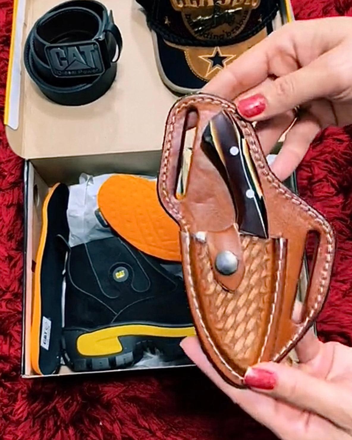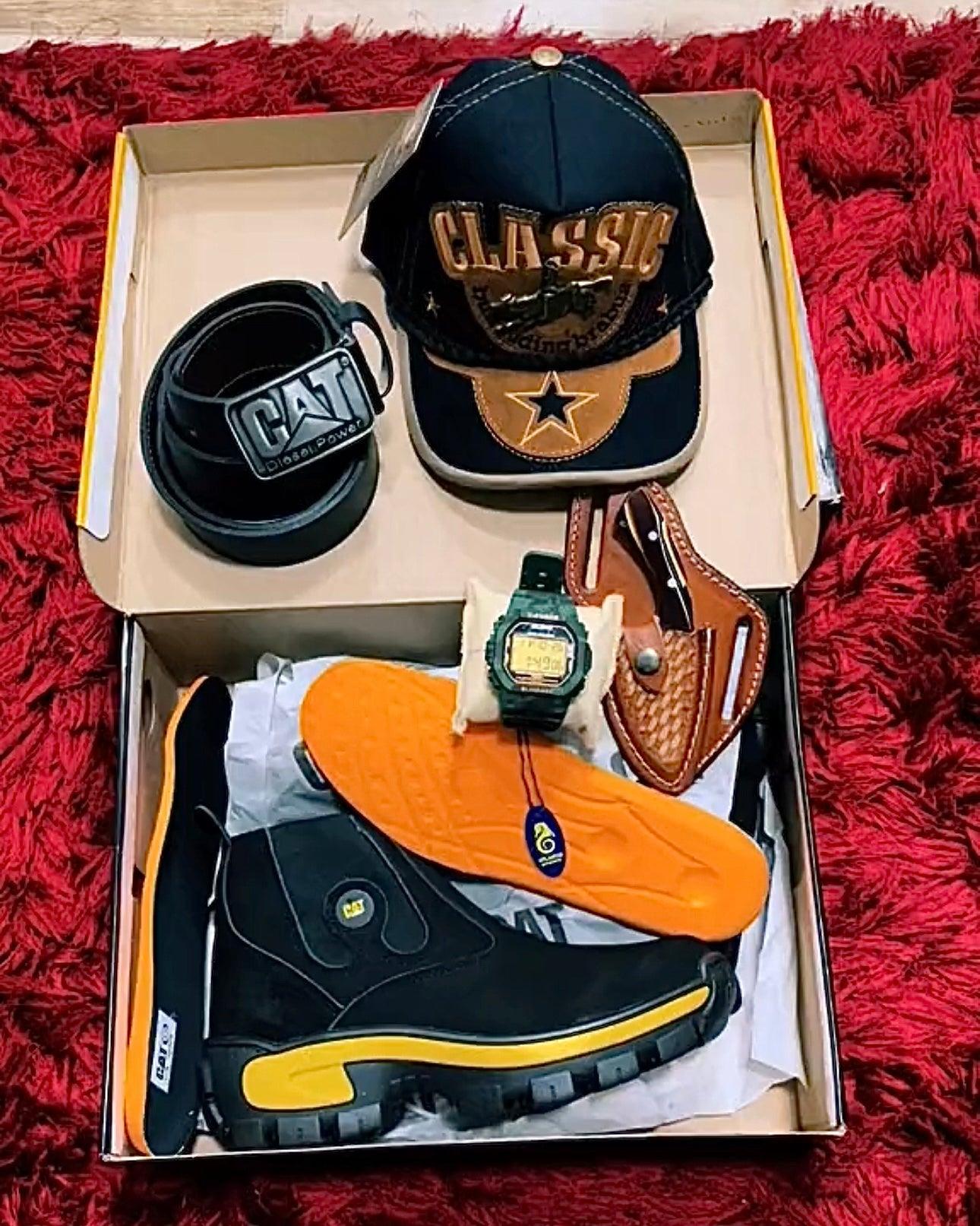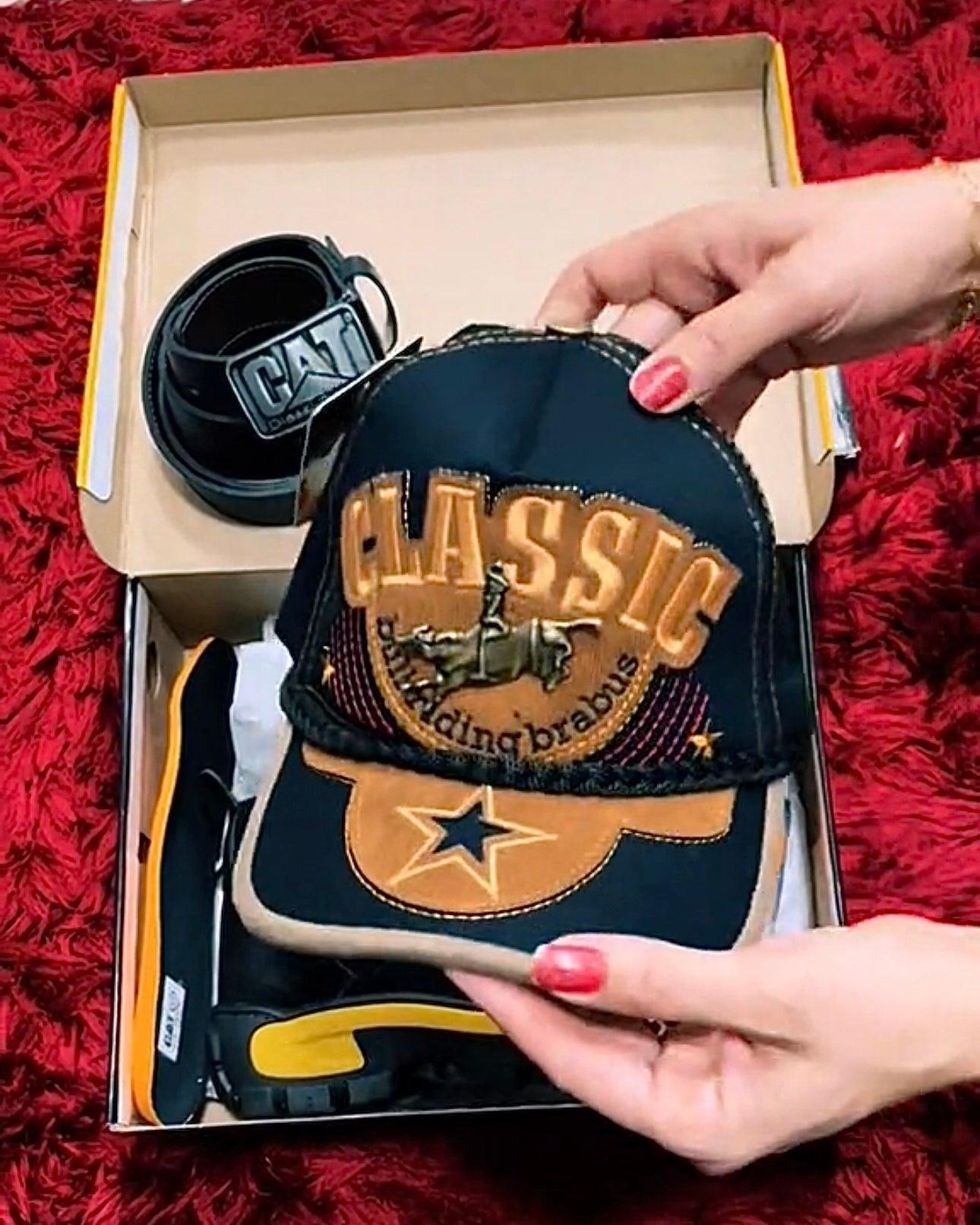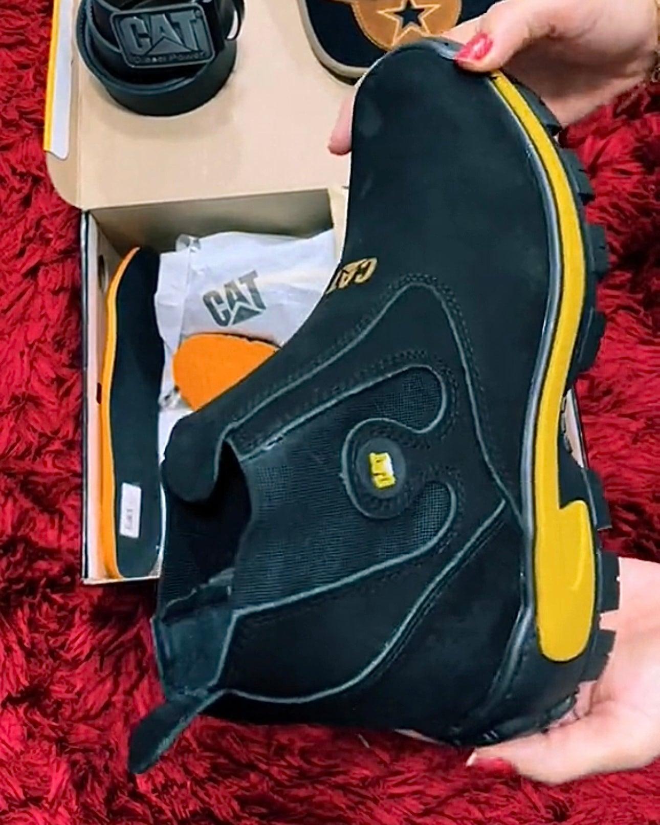 Kit Caterpillar – Botina + Boné + Cinto + Faca + Relógio (Oferta do Agricultor, Só Hoje!)